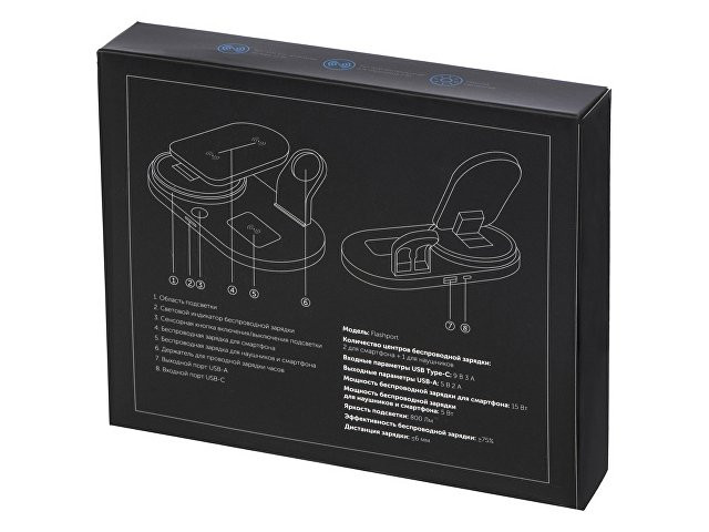 «Flashport» от Evolt - это складная зарядная станция с беспроводной зарядкой для телефона и наушников. В комплекте также идет подставка под зарядку для наручных смарт-часов. На регулируемой панели зарядки смартфона расположены 2 катушки (2 центра беспроводной зарядки), которые позволяют заряжать ваш девайс как в вертикальном, так и горизонтальном положении. Беспроводная зарядка для наушников мощностью 5 Вт подходит для зарядки не только беспроводных наушников, но и второго смартфона. Чтобы включить встроенную лампу, нажмите сенсорную кнопку 1 раз. Для плавного изменения яркости света нажмите и удерживайте сенсорную кнопку при включенной лампе. Кабель 100 см в комплекте. • Быстрая беспроводная зарядка смартфона 15 Вт • Беспроводная зарядка наушников 5 Вт • Лампа-диммер яркостью до 800 Лм • Дополнительный порт USB-A для зарядки внешних устройств