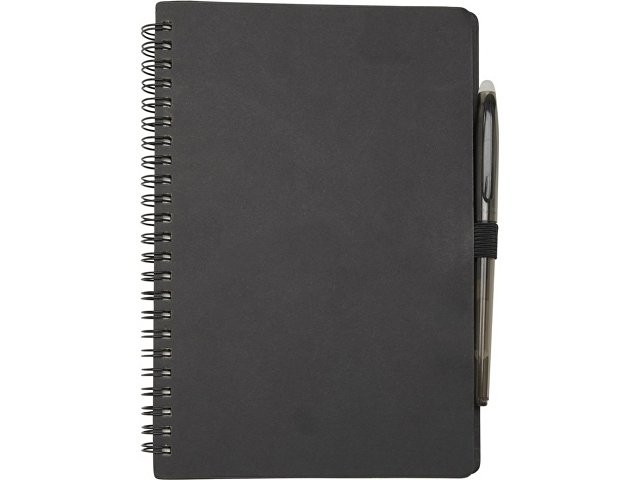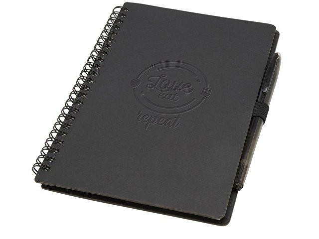 Многоразовый набор из ручки и блокнота в мягкой обложке из каменной бумаги. Блокнот имеет обложку из картона, закругленные углы и 32 листа линованной бумаги плотностью 120 г/м². В производстве каменной бумаги не используется дерево, а на сам процесс изготовления затрачивается гораздо меньше энергии в сравнении с производством переработанной или целлюлозной бумаги. Сзади имеется карман для хранения черной протирочной ткани (входит в комплект). Ручка из переработанного пластика с стираемыми чернилами, прозрачным корпусом, белым ластиком сверху и однотонной цветной рукояткой. Цвет чернил: черный. Длина непрерывной линии: 250 метров. Размер пера: 0,7 мм.