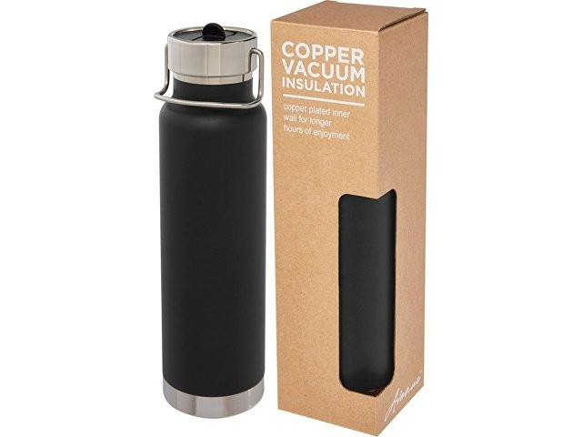Спортивная бутылка Thor объемом 750 мл с медной обшивкой и вакуумной изоляцией, черный
