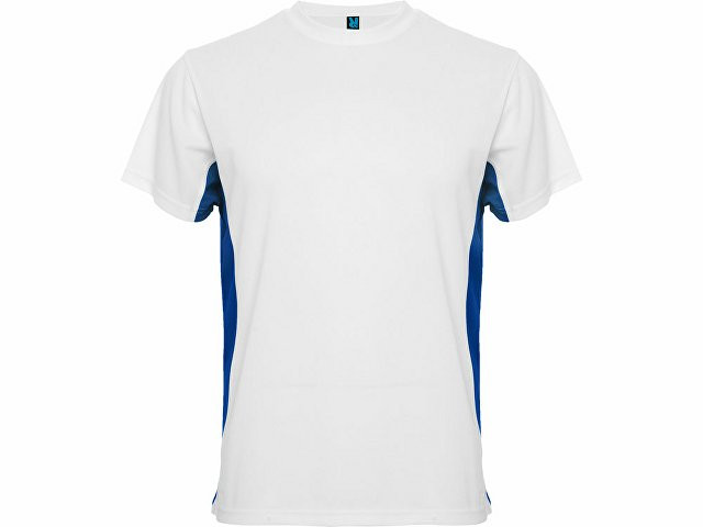 Спортивная футболка из технологического полотна и колорблок вставками. Круглый вырез горловины укреплен тесьмой. Контрастные вставки по бокам. Дышащее технологичное полотно - легко стирается и быстро сохнет.