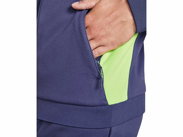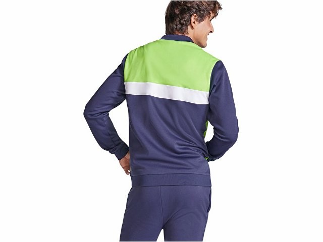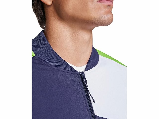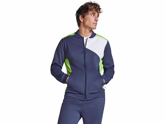 Спортивная куртка на молнии. Боковые карманы закрываются на молнию. Воротник, манжеты и низ из риба 1х1. Ассиметричная левая сторона спроектирована специально для вышивки. Может быть с комбинирована с брюками Rhodes.
