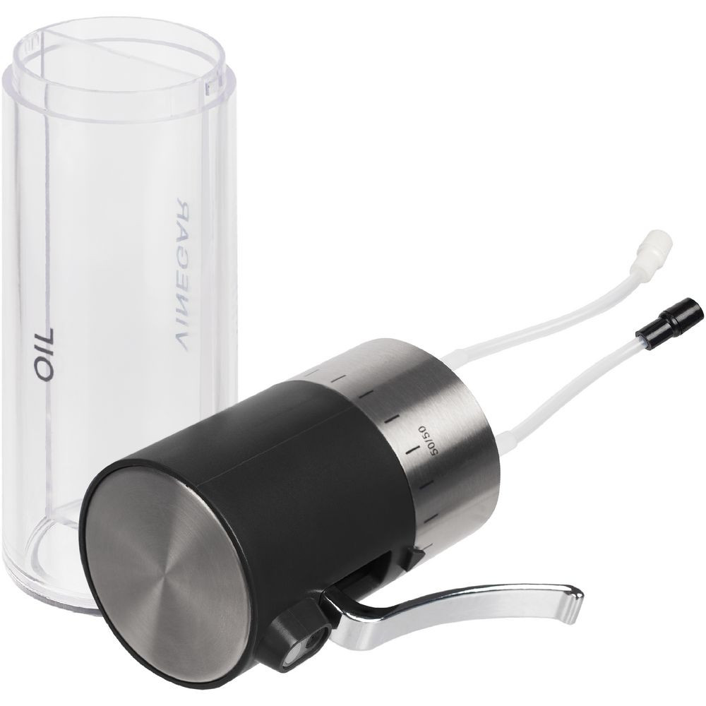 Спрей-дозатор Spatter позволяет контролировать количество используемого масла и уксуса при приготовлении блюд. Благодаря поворотному механизму на крышке можно использовать жидкости по отдельности, либо же смешивать в разных пропорциях.Емкость: 50 мл для масла, 50 мл для уксуса.