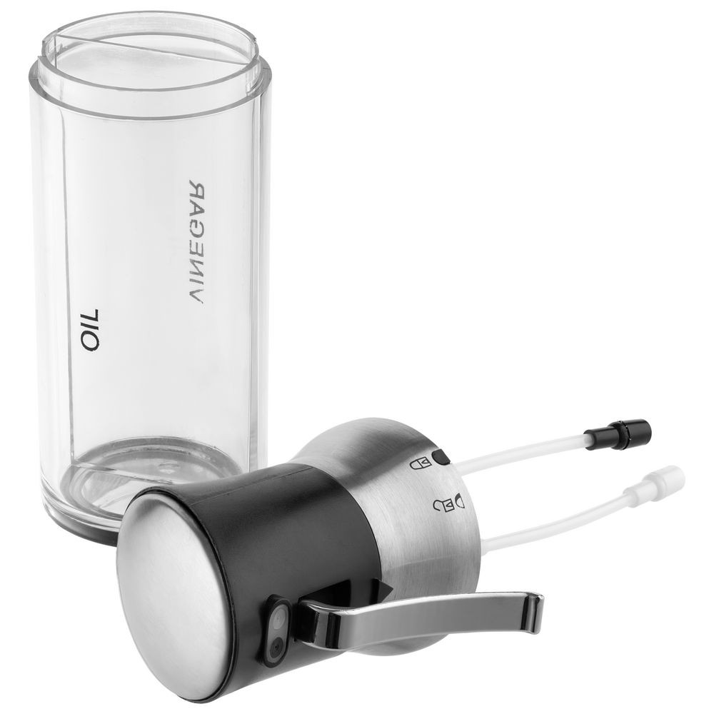 Благодаря поворотному механизму на крышке жидкости можно как использовать по отдельности, так и смешивать в разных пропорциях.Емкость: 100 мл для масла, 100 мл для уксуса.