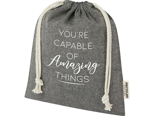 Расчет нанесенияПодарочная сумка из хлопка, переработанного по стандарту GRS, с хлопковым шнурком для затягивания. Идеально подходит для подарков или хранения предметов. Размер: 25 x 30 см.