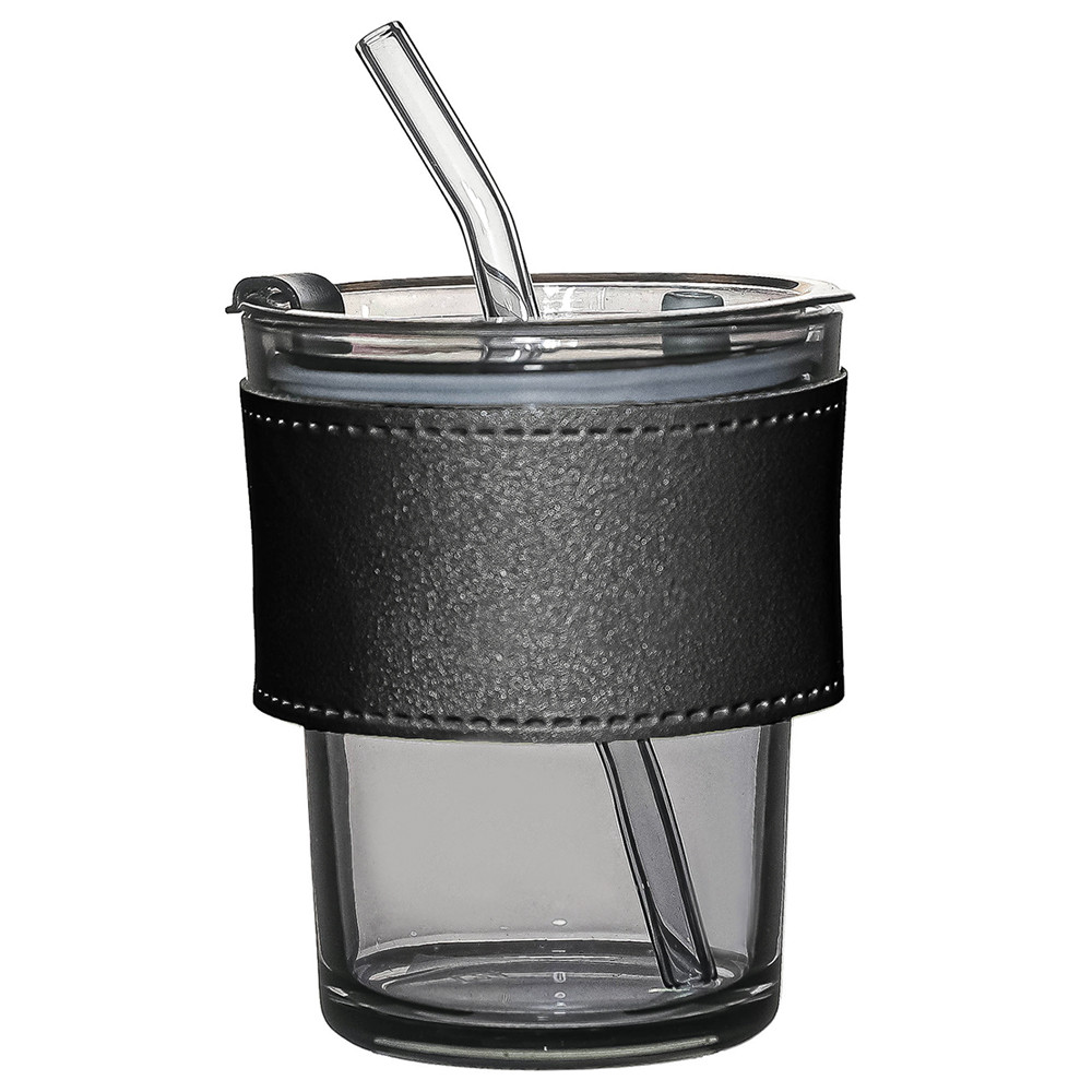 Стакан стеклянный с трубочкой и капхолдером Karamel, Черный