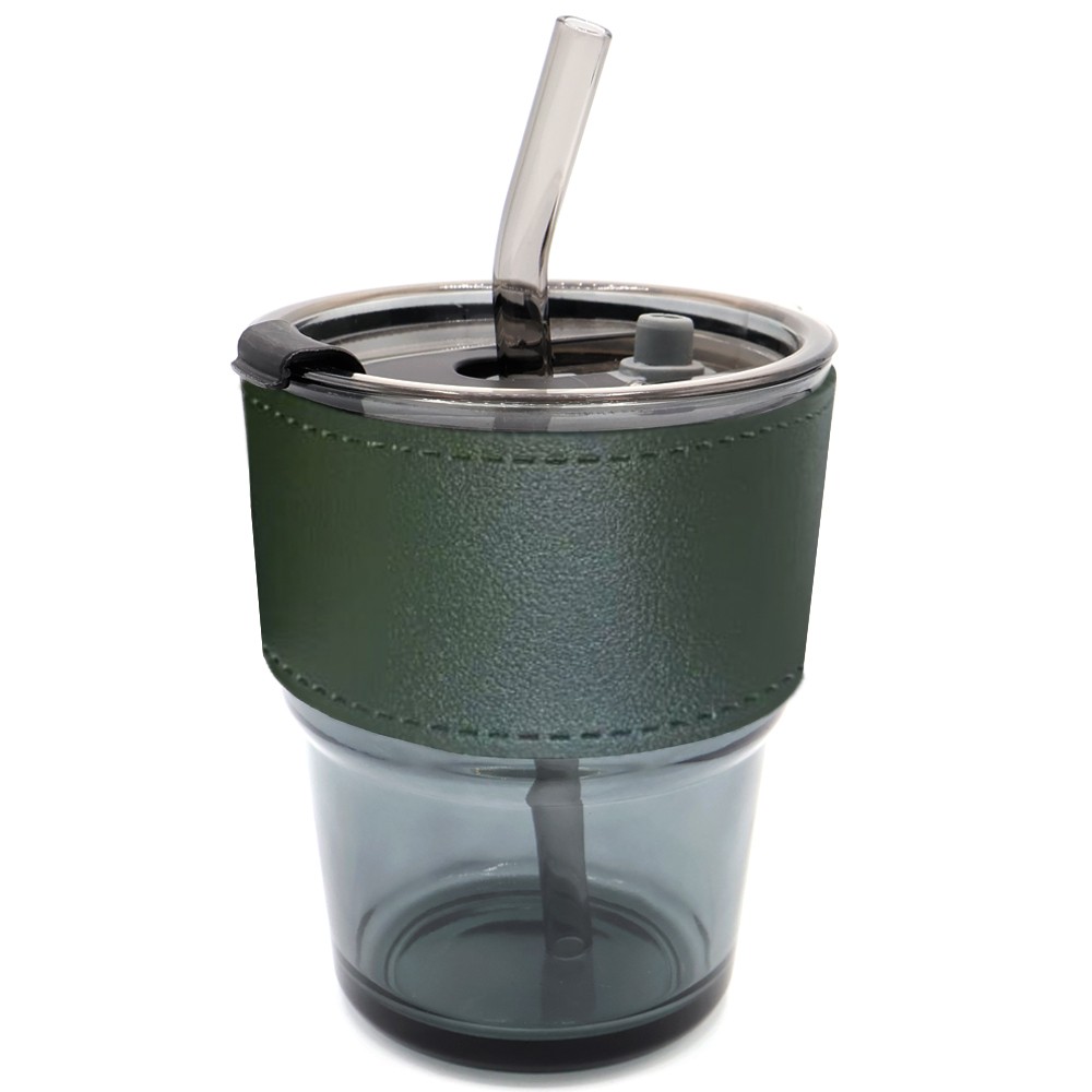 Стакан стеклянный с трубочкой и капхолдером Karamel, зелёный