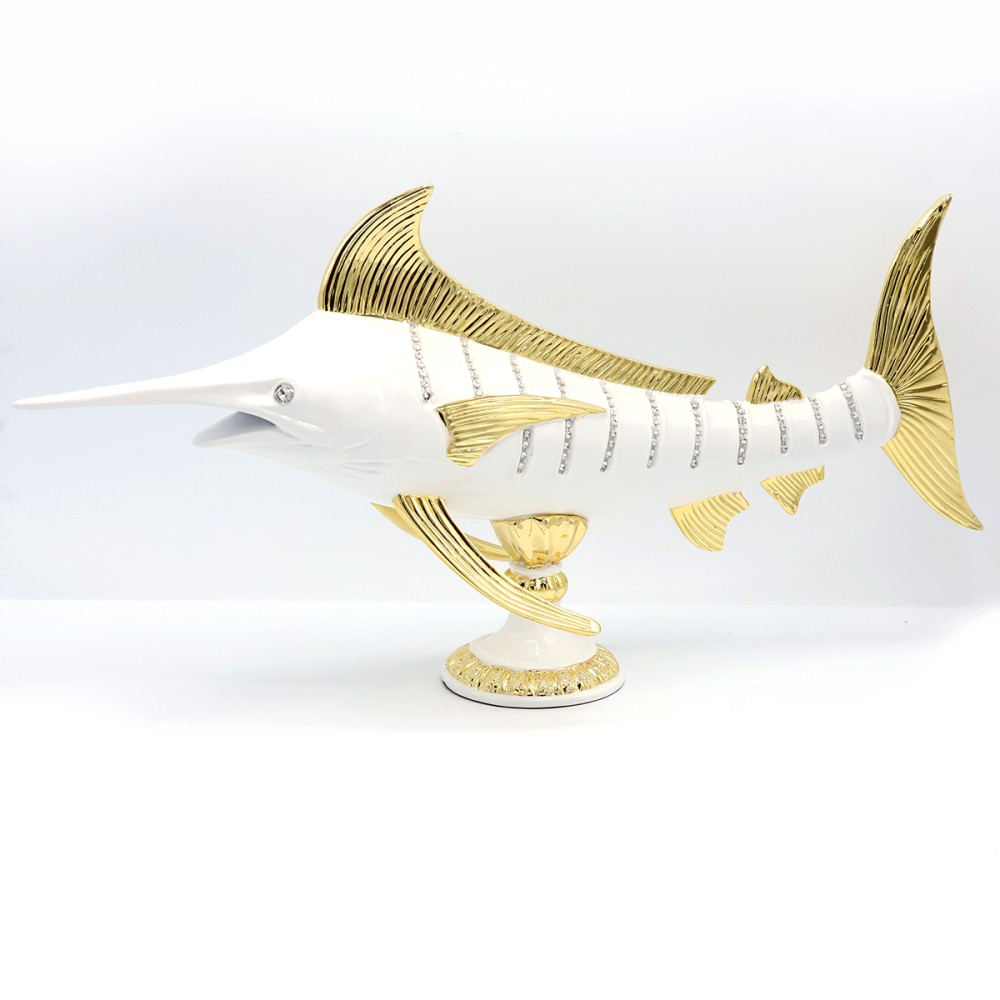 Статуэтка Рыба — это небольшая декоративная фигурка, изображающая рыбу. На статуэтке хорошо прорисованы детали: плавники, чешуя, глаза, что делает ее очень реалистичной. Такая статуэтка отлично подойдет для украшения интерьера, создаст атмосферу морского уюта или станет приятным подарком любителям рыбалки и морской тематики.