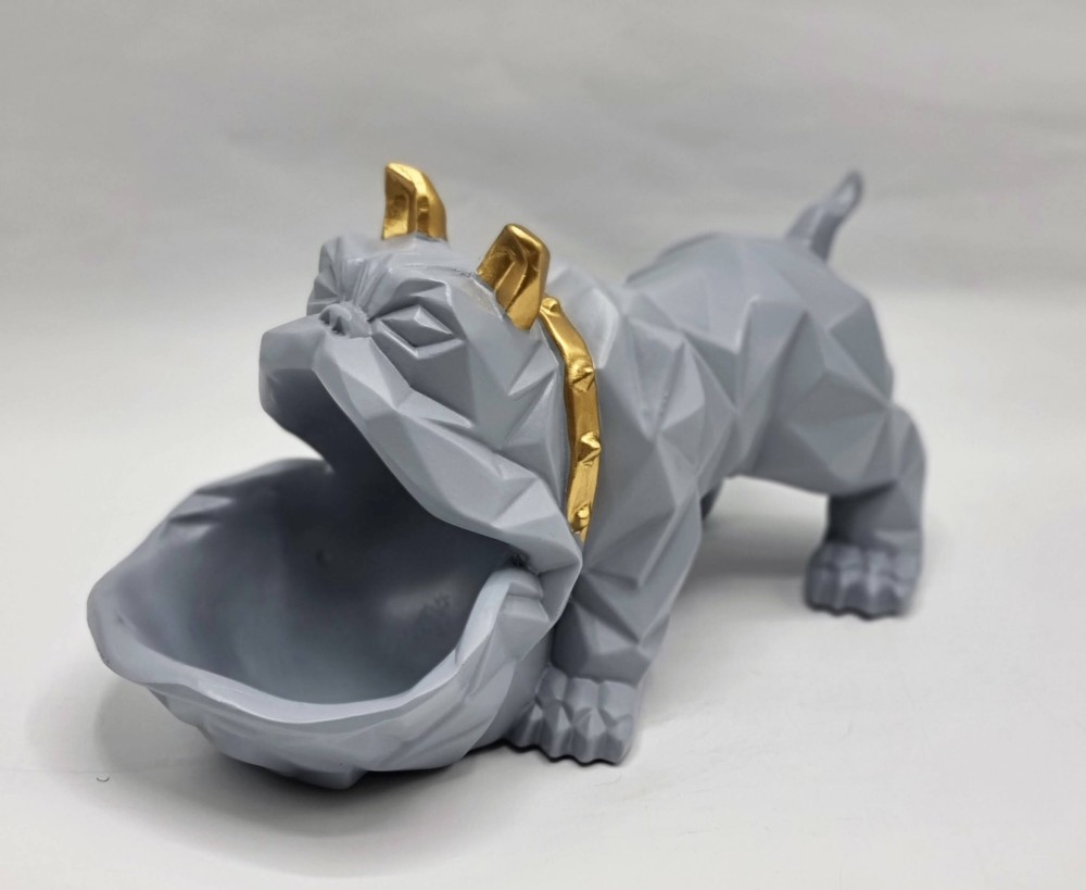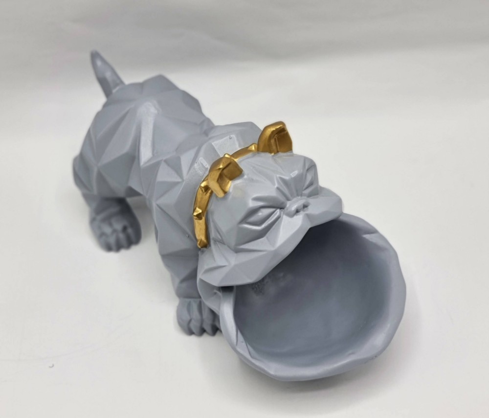 Хранитель мелочей Бульдог - стильная вещица для украшения современного интерьера. Статуэтка сделана из современного полимерного материала, из которого производят прочные и долговечные изделия домашнего обихода. Бульдог будет охранять все, что вы доверите ему. Это могут быть: ключи, украшения, конфетки и многое другое. Эта вещица станет прекрасным подарком друзьям, людям с нестандартными взглядами на стиль, тем, кому до боли надоели плавные линии. А если в качестве подарка пока не нужен - просто порадуйте себя стильной и новой в современном мире вещью. Материал: полирезина (твердый многокомпонентый материал на основе синтетической смолы, с добавлением красящих пигментов и каменной крошки); Размеры: 28*13,5*16,5 см Упаковка: Транспортная коробка с защитным пенопластом