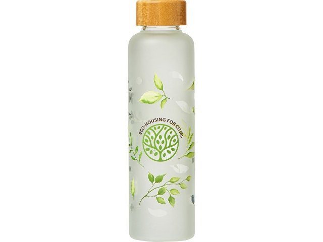 Стеклянная бутылка с бамбуковой крышкой «Foggy», 600 мл (дизайн с листьями) Образец возможностей круговой УФ-печати на матовой бутылке: на корпусе выборочно использовано прозрачное нанесение (силуэты листочков и эмблема), которое создает интересный эффект. Этот образец позволяет наглядно продемонстрировать вашему клиенту, как именно можно «подсветить» логотип или отдельные фрагменты изображения при помощи брендирования. Обратите внимание на то, что прозрачная печать также возможна на пластиковых моделях. Кроме того, этот образец демонстрирует и один из наших хитов — бутылку Foggy, отличное сочетание матового боросиликатного стекла с натуральным материалом. Боросиликатное стекло легче и прочнее, чем обычное, но также безопасно для человека, не искажает вкус и запах напитка. - Наглядная демонстрация возможностей круговой УФ-печати - Лакировка на цветных элементах - Прозрачная печать - Безопасные материалы - Вкус и запах напитка не искажается даже при долгом использовании - Стильное сочетание текстур