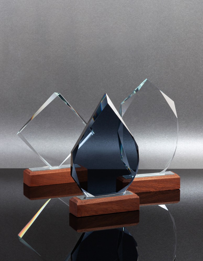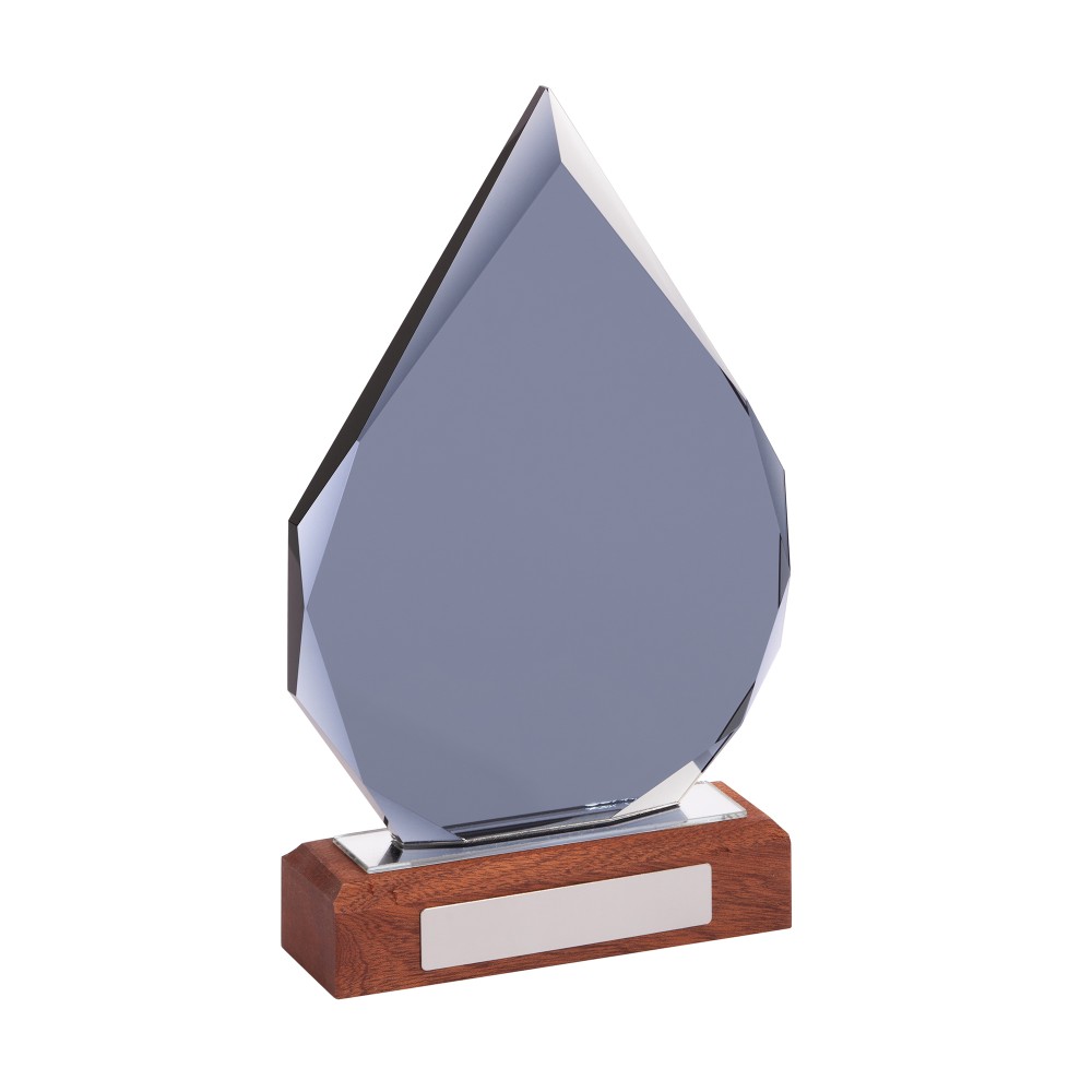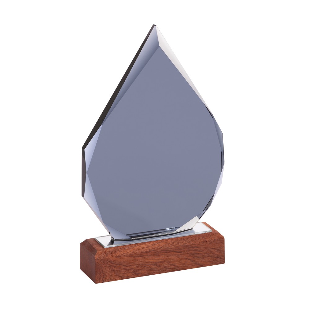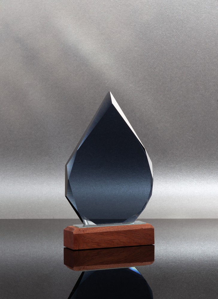 «Капля» представлена в тёмном стекле, на подставке из натурального дерева (палисандр), с возможностью персонализации на стекле или шильде. Символичное напоминание о личном вкладе в большое (общее) дело.