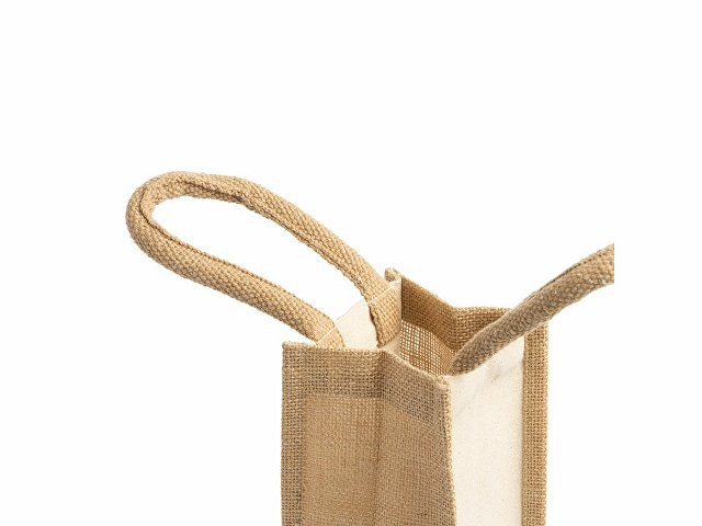 Сумка из ламинированного джута и хлопка. Усиленные ручки. Идеально подходит для бутылок.