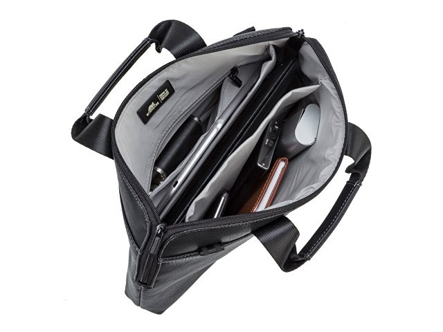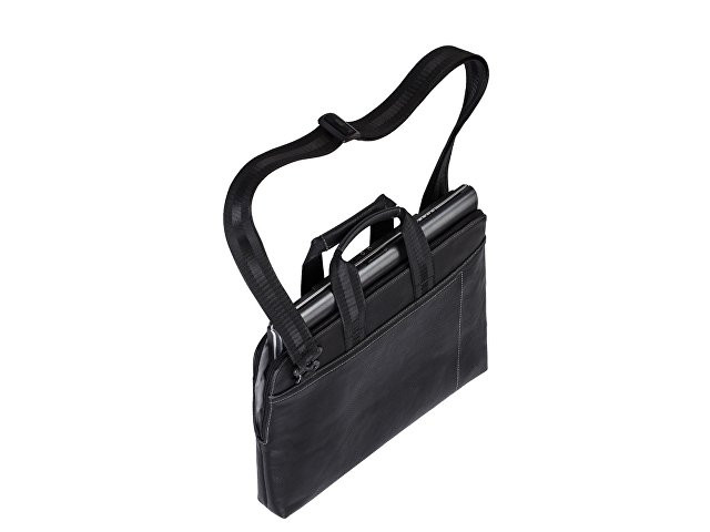 Сумка для ноутбука до 13.3''. • Ультратонкая и легкая сумка для ноутбуков до 13.3”. • Идеально подходит для Macbook Pro и Air 13.3”. • Сумка выполнена из плотной искусственной кожи и имеет утолщенные стенки для защиты ноутбука от случайных ударов и царапин, а также от пыли и влаги. • Два дополнительных внутренних отделения помогут удобно разместить все необходимые аксессуары, планшет до 10.1"" и документы. • Также имеется внутренний карман на молнии для бумажника, паспорта. • Контрастная, светлая подкладка облегчает поиск необходимого гаджета. • Ручки из оригинальной, цельной стропы закреплены через всю внутреннюю поверхность сумки, что значительно усиливает конструкцию сумки. • Регулируемый, съемный плечевой ремень.