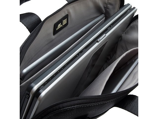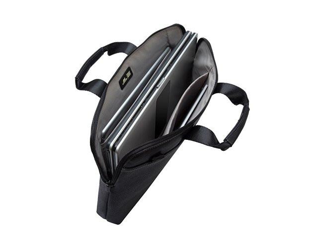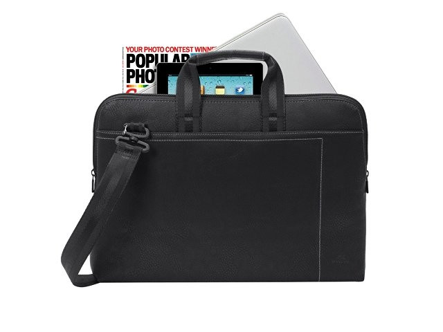 Сумка для ноутбука до 15.6''. • Ультратонкая и легкая сумка для ноутбуков до 15.6". • Сумка выполнена из плотной искусственной кожи и имеет утолщенные стенки для защиты ноутбука от случайных ударов и царапин, а также от пыли и влаги. • Два дополнительных внутренних отделения помогут удобно разместить все необходимые аксессуары, планшет до 10.1" и документы. • Также имеется внутренний карман на молнии для бумажника, паспорта. • Контрастная, светлая подкладка облегчает поиск необходимого гаджета. • Ручки из оригинальной, цельной стропы закреплены через всю внутреннюю поверхность сумки, что значительно усиливает конструкцию сумки. • Регулируемый, съемный плечевой ремень.