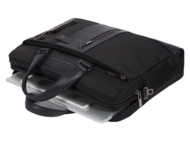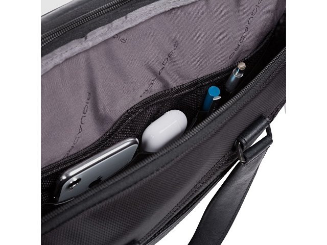 Сумка с отделениями для ноутбука, iPad® и радиочастотной защитой - мягкое отделение для ноутбука 15,6" - отделение для iPad® 10,2'', iPad® Air 10,9'', iPad®Pro 11'' - внутренний карман для мобильного телефона - карман для AirPods® - карман для мелких предметов - отстегиваемая адресная бирка - петля для ручки - ремень для крепления на ручке чемодана