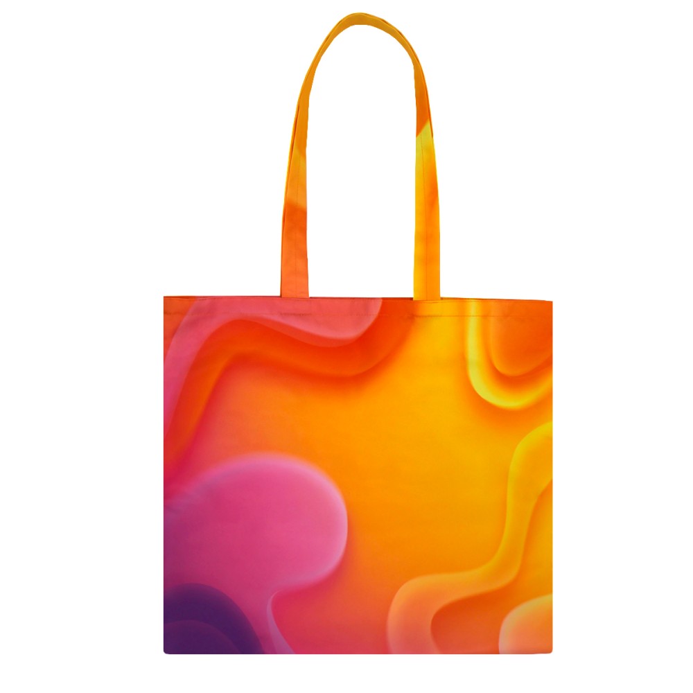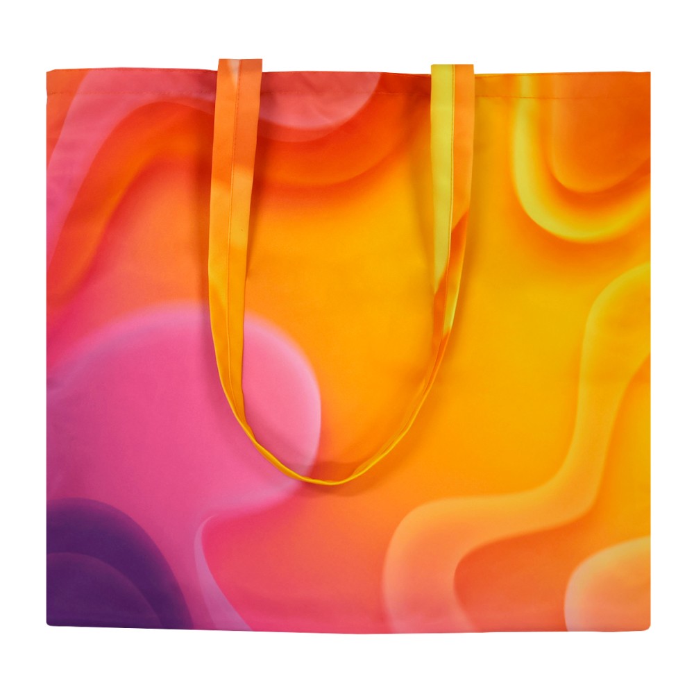 Сумка для покупок Бэгис с полноцветной печатью. ✨ Стандартный шоппер с длинными ручками. Полноцветная печать по всей поверхности от шва до шва в соответствии с брендбуком клиента (любой оттенок по CMYK: логотипы, надписи и самые разнообразные принты). Без подкладки внутри. Размер: 45 х 40см. Размер ручек: 70 х 3см (пошиты из того же материала, из которого изготавливается сама сумка). Материал: ткань Промо. Плотность: 245г/м². ✨ Ткань Промо - это 100% полиэфирное полотно саржевого переплетения с антистатической пропиткой. Ткань плотная, очень крепкая, хорошо держит форму.