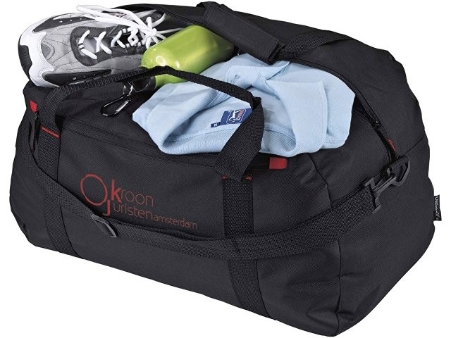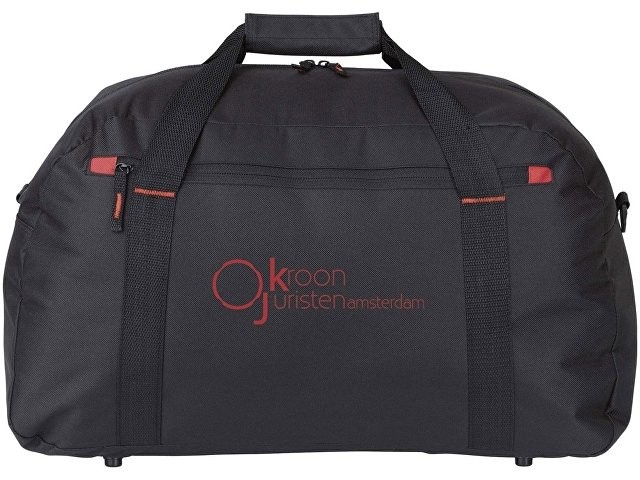 Расчет нанесенияДорожная сумка "Vancouver". Большая дорожная сумка с красным элементом отделки, передним карманом на молнии и регулируемым плечевым ремнем.