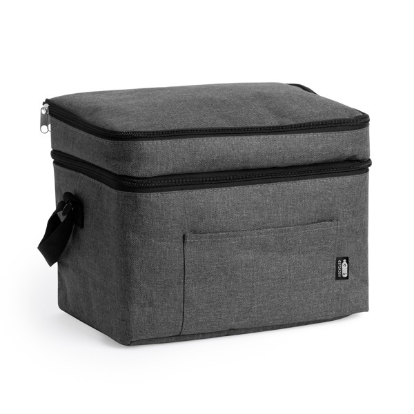 Сумка-холодильник XL из полиэстера RPET в цвете "вереск". Двойное отделение и передний карман. Изотермическая подкладка. Большая вместимость для удобного хранения и переноски напитков и продуктов. Вместимость: 14 л.
