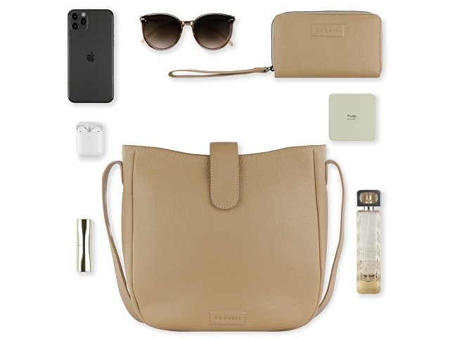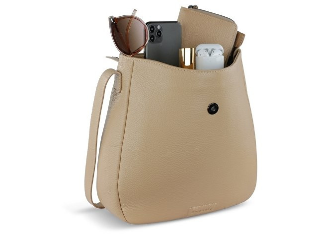 Сумка женская BUGATTI ЭЛЬЗА | ELSA, песочного цвета, воловья кожа/полиэстер, 29х8х27 см