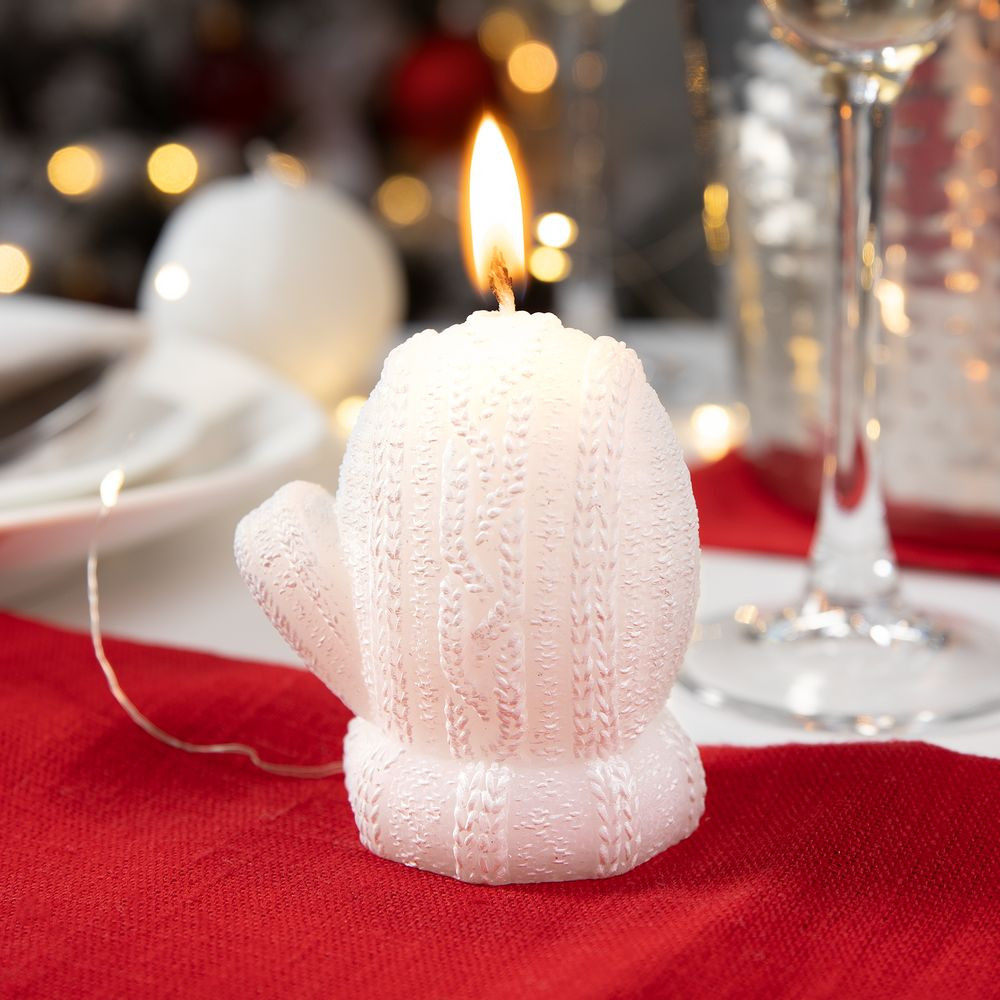 Свеча Kniteam, варежка, белая