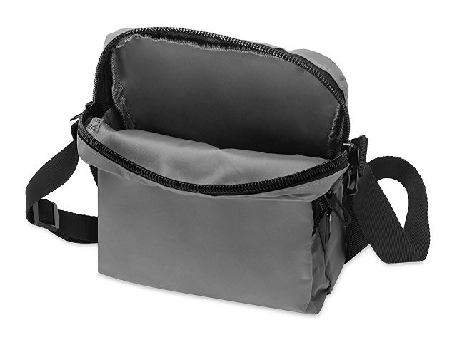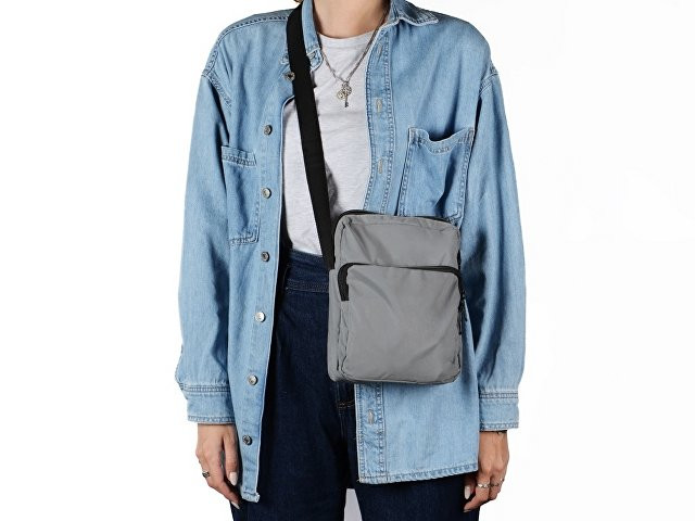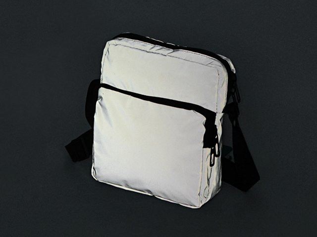 Светоотражающая сумка через плечо обеспечит дополнительную безопасность в темное время суток. Наружный карман на молнии для хранения мелочей. Ремень на плечо 140 см регулируется по длине.