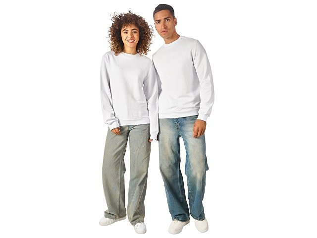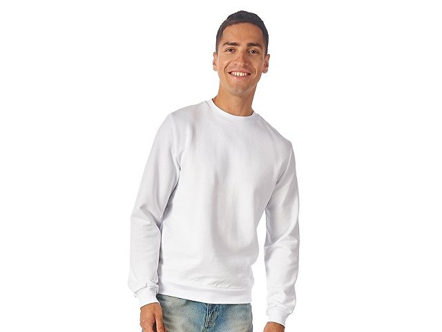 Свитшот из плотного 3х ниточного хлопкового футера. Горловина, манжеты и низ отделан рибом 2х2. Горловина спинки внутри дополнительно укреплена тесьмой с выработкой елочка. Полотно из утяжеленного хлопкового футера внутри с петельками без начеса. Модель прекрасно подходит для промо мероприятий и повседневной жизни.