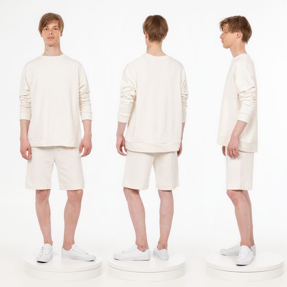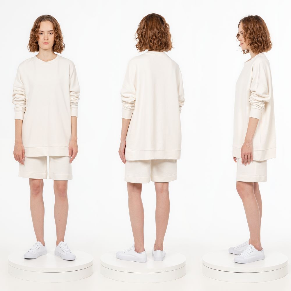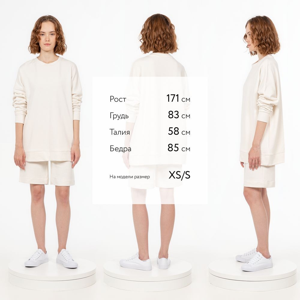 Свитшот унисекс свободной посадки со спущенным плечом.