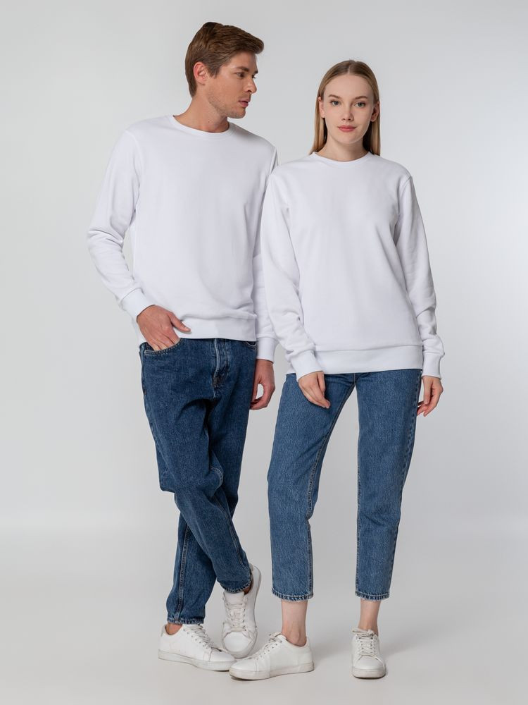 Классический свитшот унисекс с круглой горловиной и втачным рукавом. Благодаря особенности изготовления материала внутренняя сторона выполнена из хлопка, а внешняя из полиэстера.