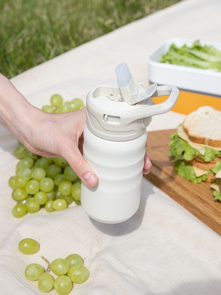 Fujisan — это термос, спортивная бутылка и термокружка одновременно. Две разные по функционалу и дизайну крышки, которые идут в комплекте, позволяют максимально удобно использовать компактный термос дома, на прогулке или в спортивном зале.