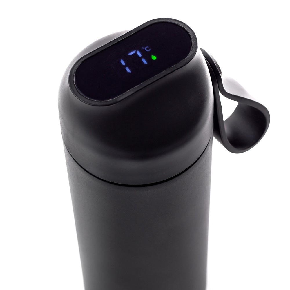 Герметичная вакуумная термобутылка Glory, изготовленная из нержавеющей стали,- идеальное решение для хранения напитков, которые можно взять с собой в дорогу. Эта бутылка разработана с учетом функциональности и стиля и оснащена двухслойной вакуумной изоляцией из нержавеющей стали, позволяющей сохранять ваши напитки горячими или холодными в течение нескольких часов подряд. Внутренний слой изготовлен из нержавеющей стали 304, известной своей долговечностью и устойчивостью к коррозии, а внешний слой термобутылки изготовлен из нержавеющей стали 201, что обеспечивает привлекательный внешний вид. Крышка термобутылки оснащена LED-дисплеем, который показывает температуру напитка в градусах Цельсия (℃). А благодаря удобной силиконовой ручке эту бутылку легко переносить и держать, даже когда ваш напиток очень горячий. Оставайтесь стильными с термосом из нержавеющей стали. Независимо от того, находитесь ли вы на работе, в походе или в пути, эта бутылка станет идеальным компаньоном для всех ваших потребностей в напитках. Бутылку для питья можно заказать в элегантном черном матовом порошковом исполнении. Доступна объёмом 600 мл. Стильно разместите свой логотип на этой модной бутылке для напитков премиум-качества. Двойная стенка с медно-вакуумной изоляцией Микропорошковое покрытие 100% герметичность