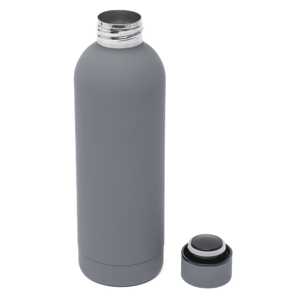 Представляем вам нашу стильную и модную термобутылку объемом 500 мл! Она не только прекрасно сохраняет температуру ваших любимых напитков, но и станет ярким акцентом вашего стиля. Бутылка имеет мягкое прорезиненное покрытие софт-тач, благодаря чему ее приятно держать в руке. Мы предлагаем возможность заказать красивое нанесение с логотипом вашей компании, что делает термобутылку идеальным промо-сувениром. Убедитесь, что ваши клиенты и партнеры не только получат функциональный подарок, но и будут гордиться стильным аксессуаром, подчеркивающим ваш имидж! Цвет по PANTONE® (максимально приближен): Cool Gray 10C.