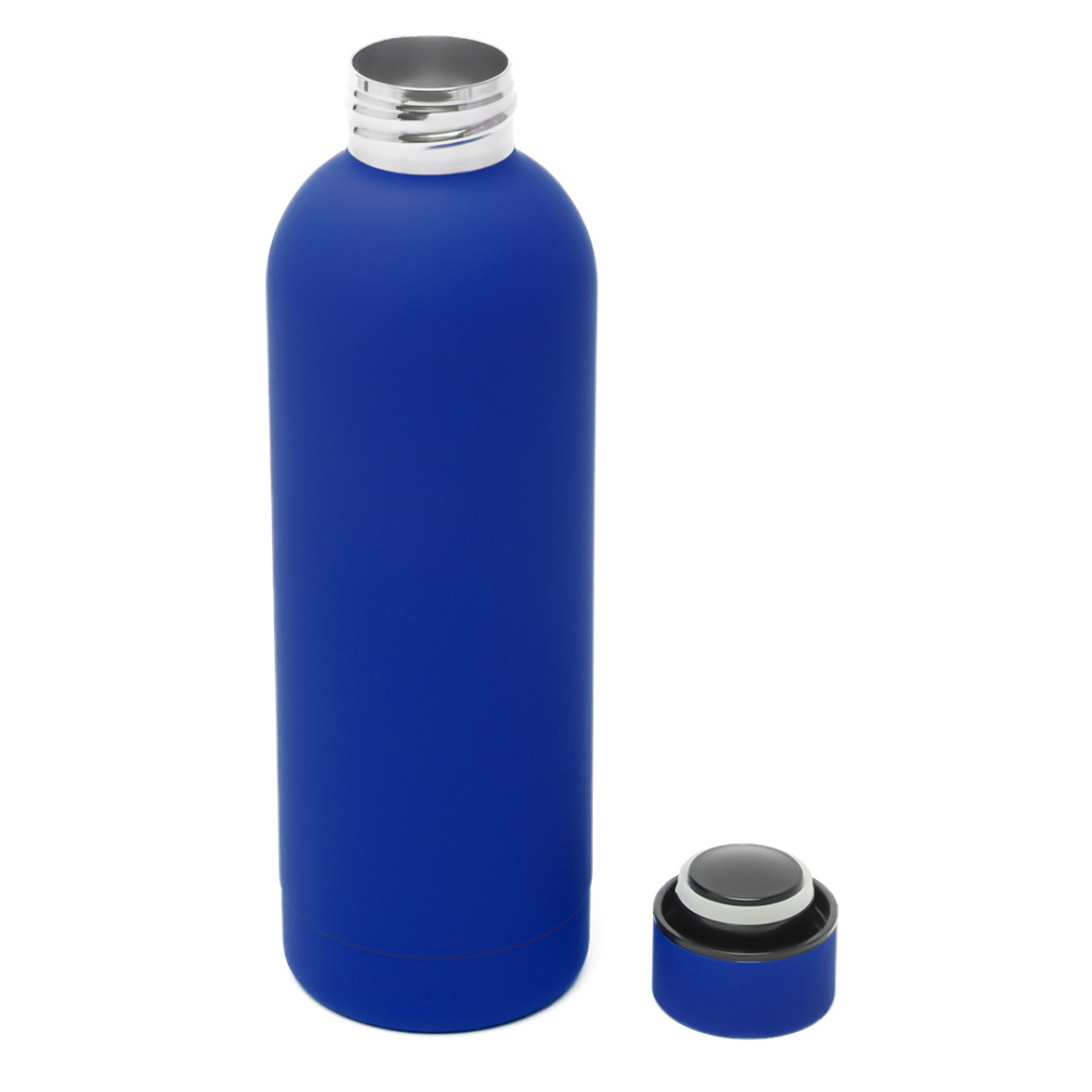 Представляем вам нашу стильную и модную термобутылку объемом 500 мл! Она не только прекрасно сохраняет температуру ваших любимых напитков, но и станет ярким акцентом вашего стиля. Бутылка имеет мягкое прорезиненное покрытие софт-тач, благодаря чему ее приятно держать в руке. Мы предлагаем возможность заказать красивое нанесение с логотипом вашей компании, что делает термобутылку идеальным промо-сувениром. Убедитесь, что ваши клиенты и партнеры не только получат функциональный подарок, но и будут гордиться стильным аксессуаром, подчеркивающим ваш имидж! Цвет по PANTONE® (максимально приближен): 2747C.