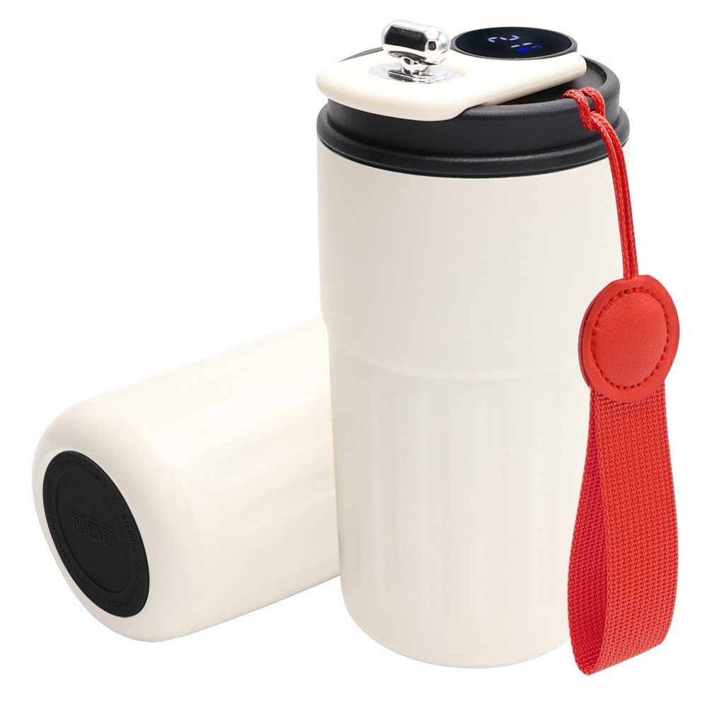 Термокружка Ashly с дисплеем выполнена из пищевой нержавеющей стали. Объем 400 мл. Имеет двойные стенки с вакуумной изоляцией, крышка изготовлена из пищевого безопасного для человека пластика. Особенностью термокружки Ashly является наличие сенсорного индикатора температуры, расположенного в крышке. Чтобы узнать температуру напитка внутри кружки, достаточно прикоснуться к поверхности крышки. Помимо этого, термокружка Ashly очень удобна в использовании. Просто нажмите на клапан в направлении дисплея, чтобы открыть верхнюю часть крышки и насладиться любимым напитком. Элегантный дизайн, удобство и функциональность - вот что делает термокружку Ashly незаменимым аксессуаром для всех любителей горячих и холодных напитков. В комплекте: термокружка, шнурок, силиконовая накладка и фирменная коробка. Надежная крышка - качественные и безопасные материалы - двойные стенки из нержавеющей стали - сенсорный ЖК-дисплей - информация о температуре жидкости -отличные теплоизоляционные свойства - эргономичный дизайн - удобная форма! Термокружка подходит для большинства автомобильных подстаканников. Красный цвет шнурка, максимально близкий к пантону 186С