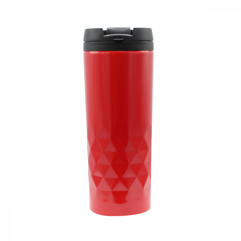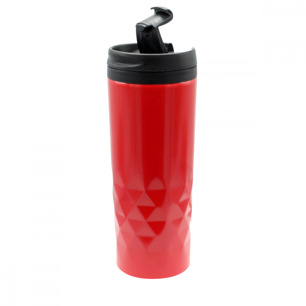 Стильная термокружка изготовлена из нержавеющей стали и дополнена оригинальными геометрическими деталями. Внутренняя колба сделана из пластика. Удобная крышка не даст расплескаться напитку. Объем термокружки – 500 мл.