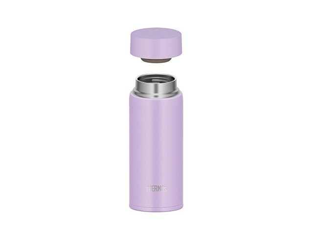 Миниатюрная и простая по внешнему виду термокружка серии JOQ от компании-создателя первого в мире термоса THERMOS вмещает в себя 350 мл напитка и сохранит его горячим или холодным в течение активного дня. Долгое поддержание температуры обеспечиваются за счет инновационных технологий, особенностей конструкции и премиум материалов, используемых в процессе производства. Технология вакуумной термоизоляции не только способствует сохранению температуру внутри, но и не позволяет корпусу термокружки нагреваться от горячих напитков или охлаждаться от прохладных, поэтому термокружку безопасно держать в руке, размещать в сумке и ставить на любые поверхности. Технология бесшовной сварки сохраняет вакуум в межстеночном пространстве на многие годы, обеспечивая прочность конструкции. Поэтому термокружка отличается долгим сроком службы, в течение которого её первоначальный вид останется без изменений благодаря износостойкому полимерно-порошковому покрытию. Особая технология нанесения покрытия делает поверхность термокружки фактурной и нескользящей, создавая приятное тактильное ощущение при удержании в руке. На ней не остаются следы от пальцев, а в случае загрязнения поверхность легко очищается обычными моющими средствами для посуды. Чтобы тщательно промыть и другие детали, крышка-пробка сделана разборной – корпус, единый с уплотнителем, легко отсоединяется от верхней крышки, достаточно сместить его в направлении стрелочки, указанной на основании крышки-пробки. Помимо гигиенической функции, глубокая крышка-пробка способствует теплосбережению и позволяет быстро открывать и закрывать термокружку. Для особого комфорта при питье края горлышка сделаны двуслойными и скруглёнными. Оптимальный размер питьевого отверстия позволяет использовать термокружку для хранения не только традиционных напитков, но и густых по консистенции, а также спортивного питания. Термокружка совместима с большинством кофемашин, легко поместится в автомобильный подстаканник или велодержатель. Все материалы, из которых изготовлен термос, экологически чистые, безопасные и практичные, не выделяют и не поглощают посторонние запахи, пригодны для вторичной переработки. Нержавеющая сталь 18/8 AISI 304 Stainless Steel, относящаяся к категории пищевой, делает термокружку прочной и долговечной, исключает химическое взаимодействие с содержимым, поэтому напитки остаются вкусными и ароматными. Герметичность обеспечивает прокладка из термостойкого пищевого силикона. Пробка из современного пластика, который не содержит бисфенол А (BPA free), устойчив к высоким температурам и механическим повреждениям. Термос полностью соответствует Международному стандарту качества EN12546-1:2000. Лаконичный дизайн, утончённая форма и нежный лавандовый цвет создают безупречный внешний вид термокружки, который обязательно оценят представительницы прекрасной половины человечества, как маленькие, так и взрослые.