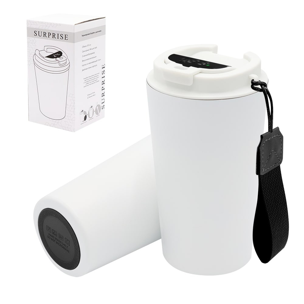 Термокружка Surprise To Go с индикатором, Белый/ черный