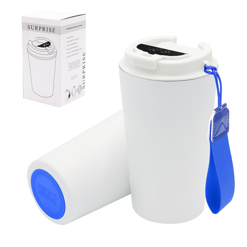 Термокружка Surprise To Go с индикатором, Белый/ синий