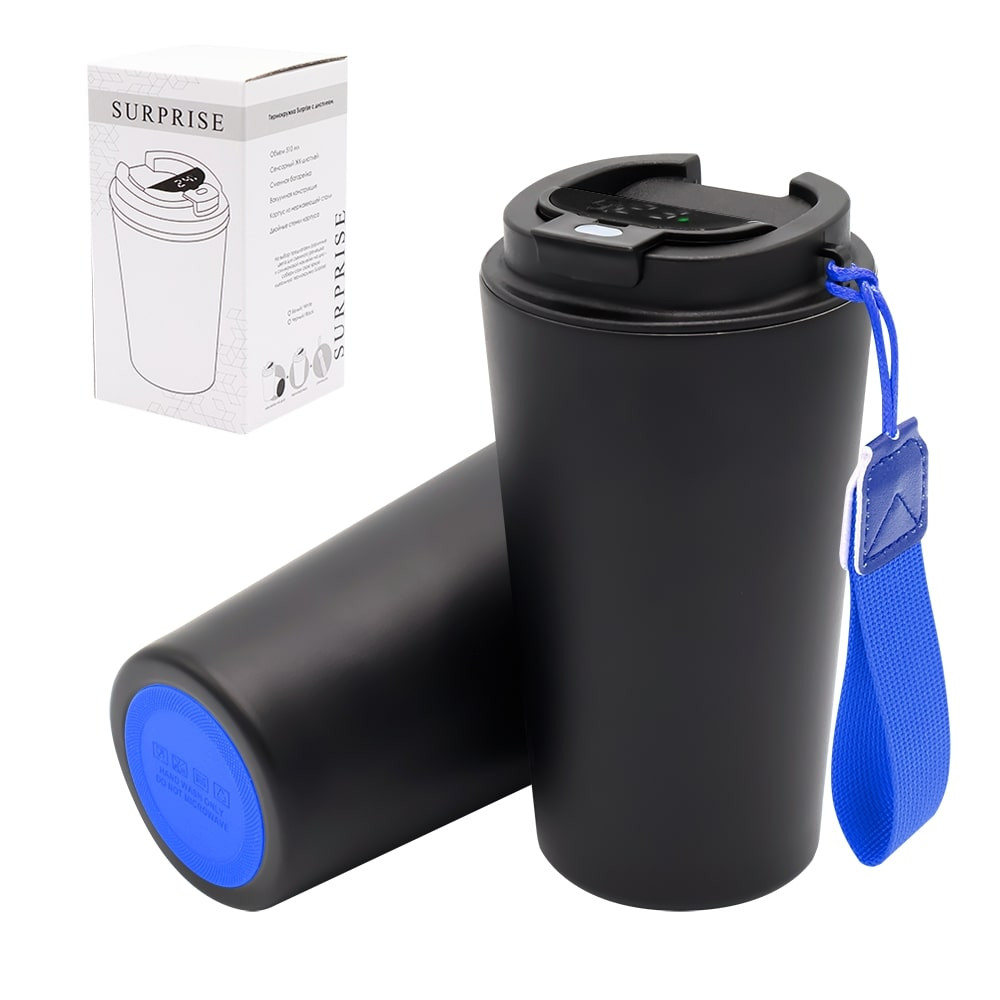 Термокружка Surprise To Go с индикатором, Чёрный/синий
