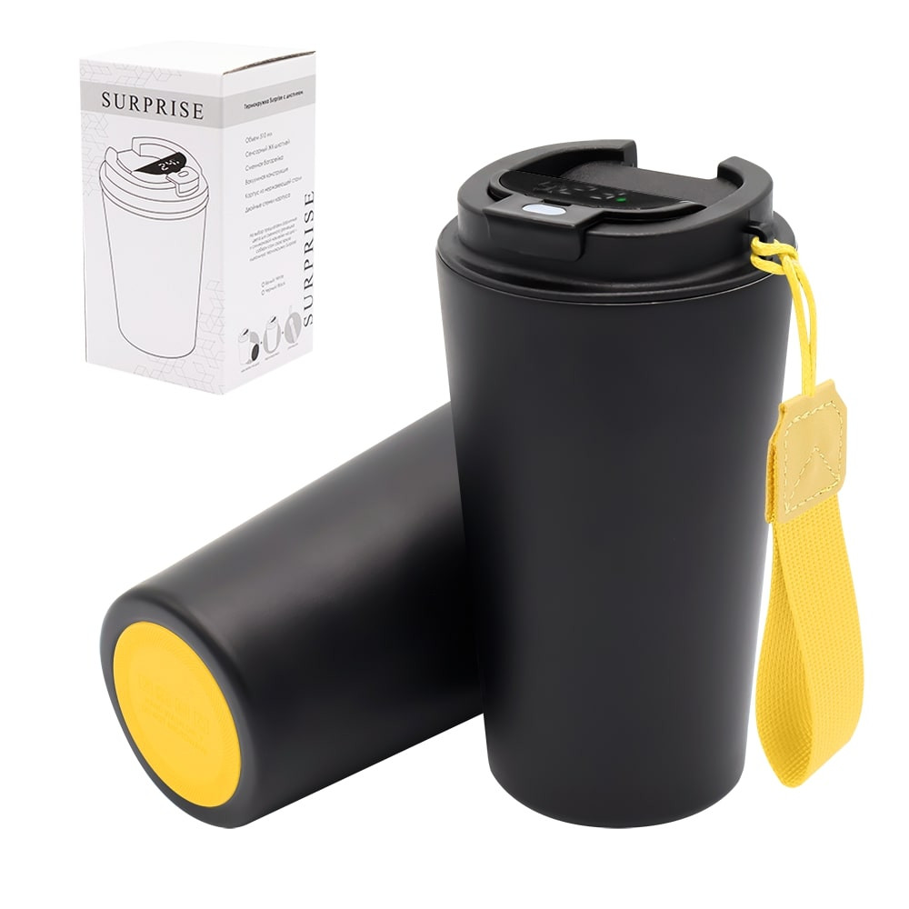 Термокружка Surprise To Go с индикатором, Черный/жёлтый