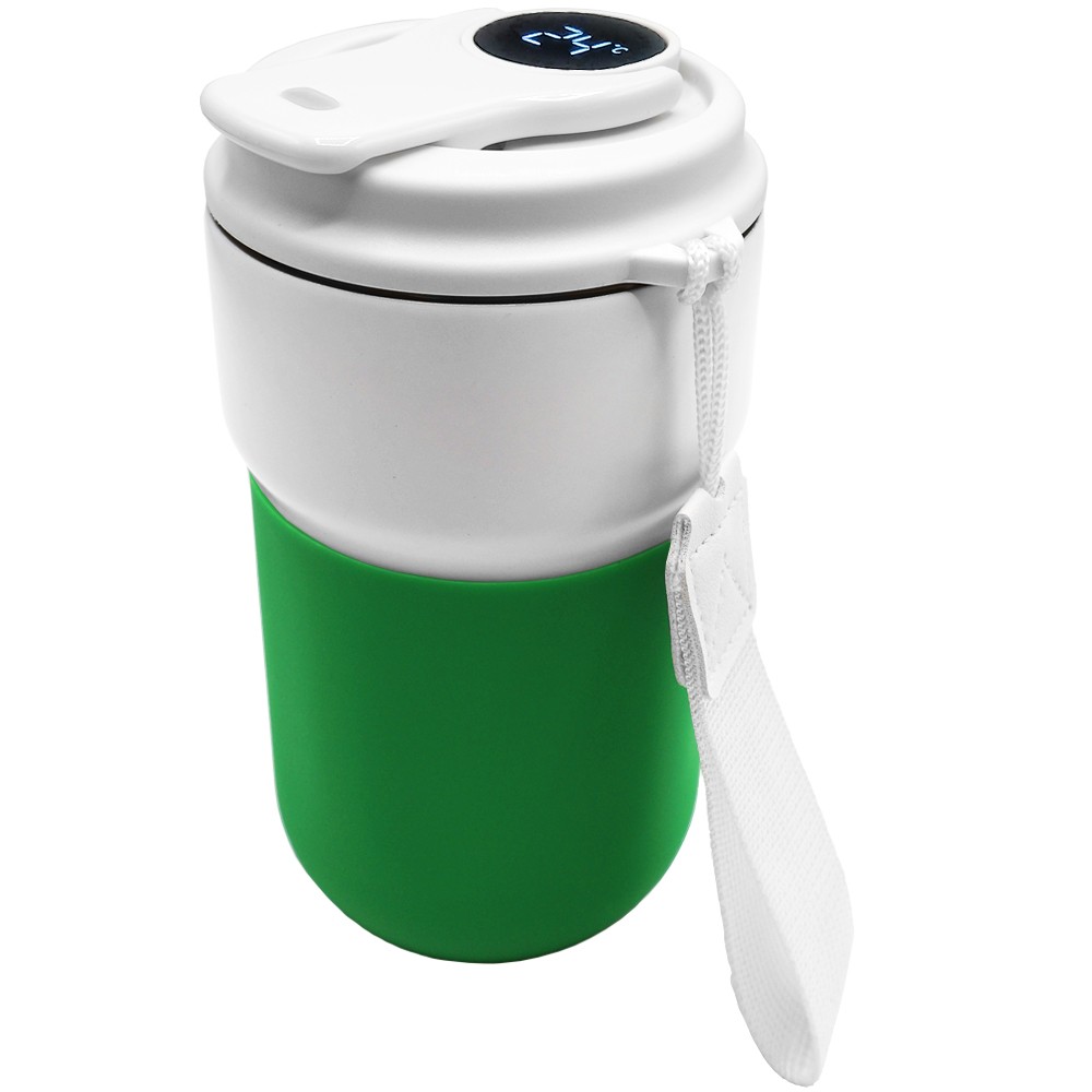 НОВИНКА - термокружка CLIVE TO GO!! В набор входит уже хорошо знакомая термокружка Clive с дисплеем (420 мл) и цветная силиконовая манжета. Термокружка выполнена из пищевой нержавеющей стали. Имеет двойные стенки с вакуумной изоляцией, крышка изготовлена из пищевого безопасного для человека пластика. Термокружка Clive не только сохраняет ваши напитки горячими, но и показывает температуру напитка! Уникальная особенность данной термокружки – наличие сенсорного индикатора температуры, расположенного в крышке. Чтобы узнать температуру напитка внутри кружки, достаточно прикоснуться к поверхности крышки. Работает от 1 батарейки типа CR2032 (в комплекте). Надежная крышка - качественные и безопасные материалы - двойные стенки из нержавеющей стали - сенсорный ЖК-дисплей - информация о температуре жидкости -отличные теплоизоляционные свойства - эргономичный дизайн - удобная форма! Термокружка подходит для большинства автомобильных подстаканников. Манжета препятствует скольжению на поверхности, придаёт устойчивости, а также позволяет создать свой неповторимый дизайн для вашей термокружки! Цвет манжеты - зелёный, максимально приближен к Pantone 355С. Насладись своим кофе в компании термокружки Clive TO GO! Сделай свою кружку особенной!