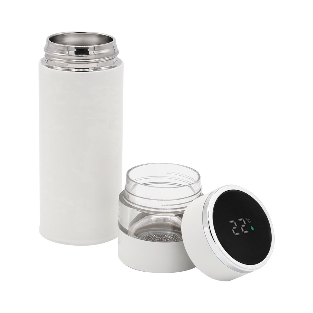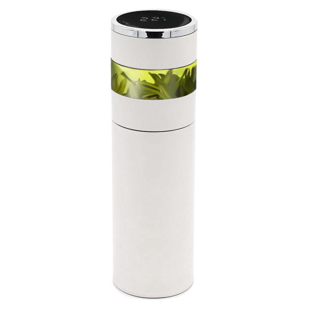 Умный термос с инфьюзером и светодиодным дисплеем не оставит равнодушным никого вокруг! Необычный дизайн, удобная форма, качественное покрытие — это все он, термос Amber! Двойные стенки из нержавеющей стали, сохраняющие ваш напиток горячим или холодным продолжительное время. Внутренняя стенка термоса изготовлена из пищевой нержавеющей стали марки 304. Инфьюзер (ситечко из нержавеющей стали) задерживает чайные листья в верхней части, не пропуская вниз. Силиконовое дно предотвращает скольжение термоса на поверхности. Дисплей показывает температуру напитка в градусах Цельсия (℃). Элемент питания CR2032 в крышке несъемный, расчетное приблизительное время работы до 1000 дней или 50 000 нажатий. При использовании просто слегка коснитесь светодиодного дисплея, он сразу же отобразит температуру напитка в термосе. Обратите внимание, не нажимайте на экран слишком сильно. Умный термос объемом 450 мл подходит для большинства подстаканников и легко помещается в сумку. Колба герметична и безопасна в сумке во время прогулки. Термос Amber - идеальный выбор для путешествий и прогулок, также идеально подходит для использования на работе, офисе или дома. - качественные и безопасные материалы - двойные стенки из нержавеющей стали - сенсорный ЖК-дисплей - информация о температуре жидкости - инфьюзер для заваривания чая - отличные теплоизоляционные свойства - эргономичный дизайн - удобная форма
