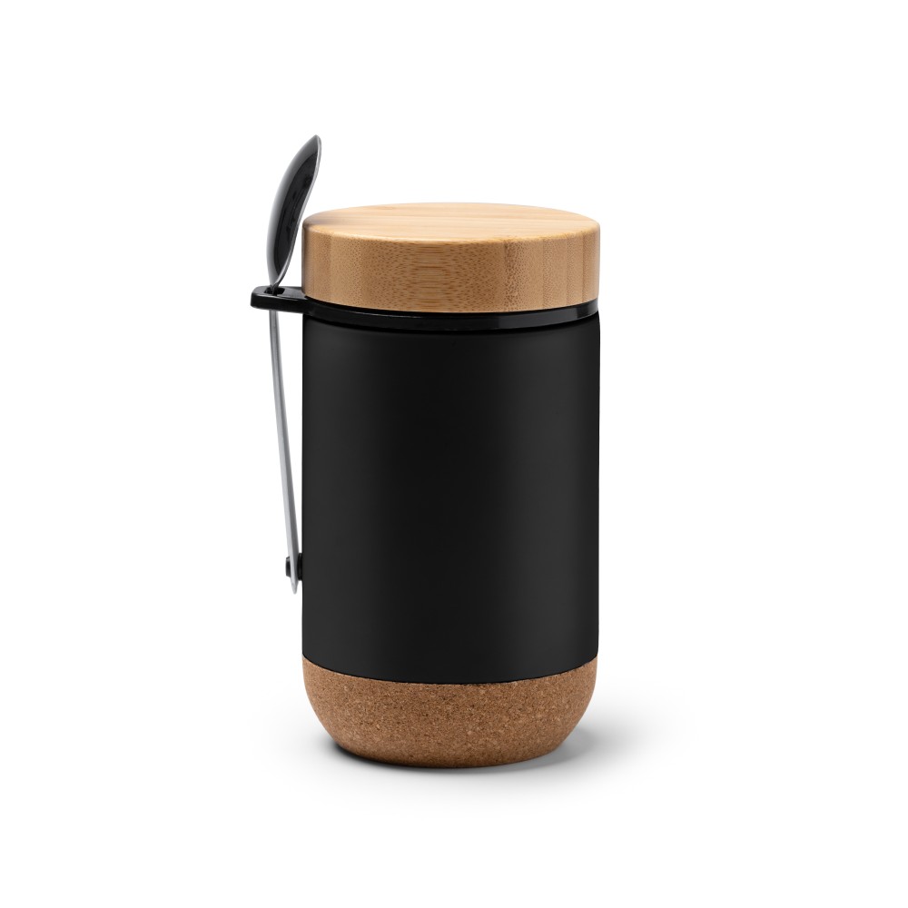 Термос из нержавеющей стали. Двойная стенка с медной изоляцией. Емкость 400 мл. Бамбуковая крышечка и пробковое дно.