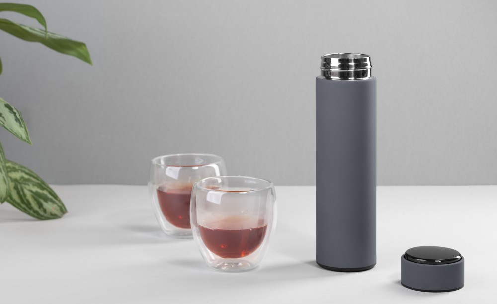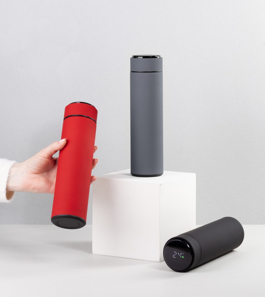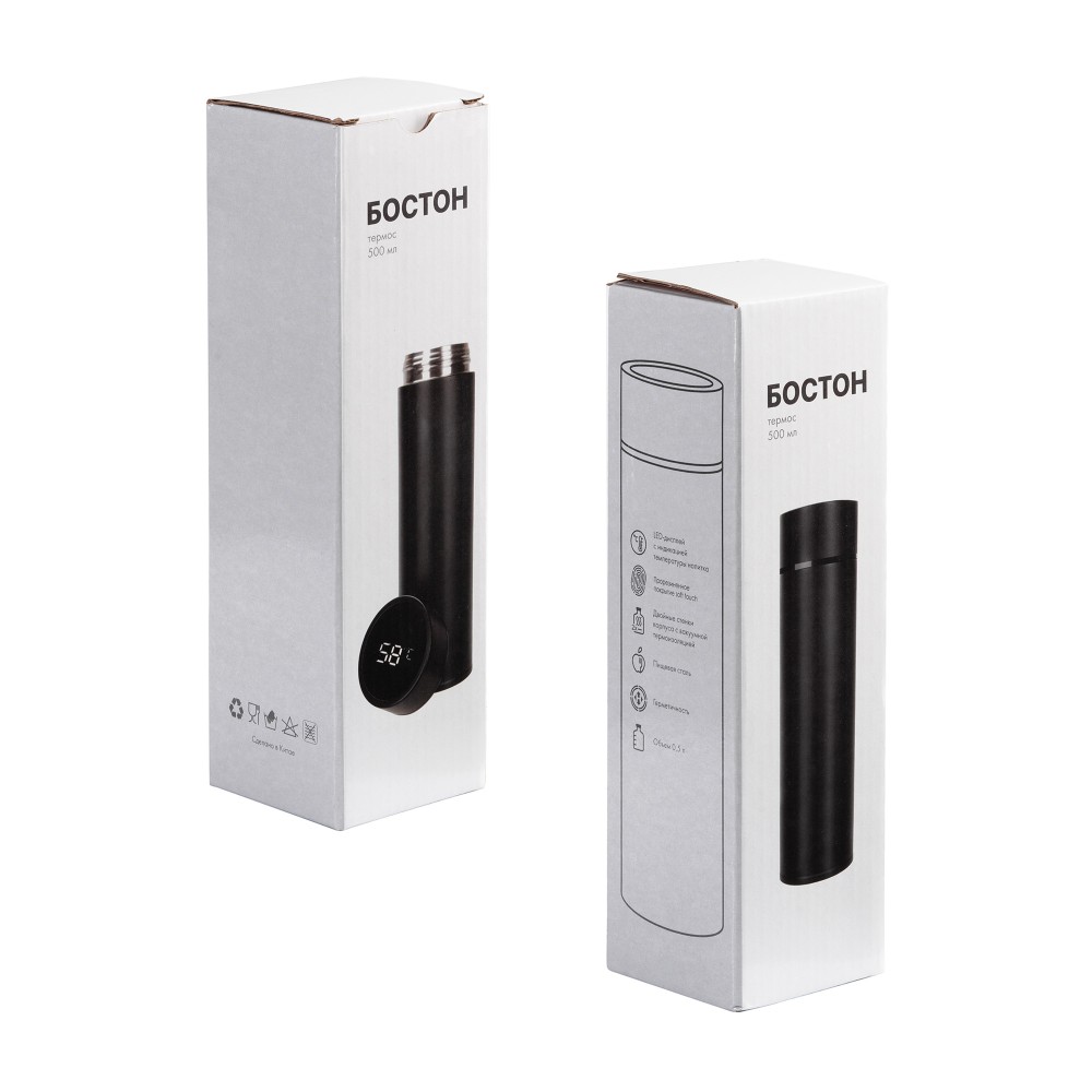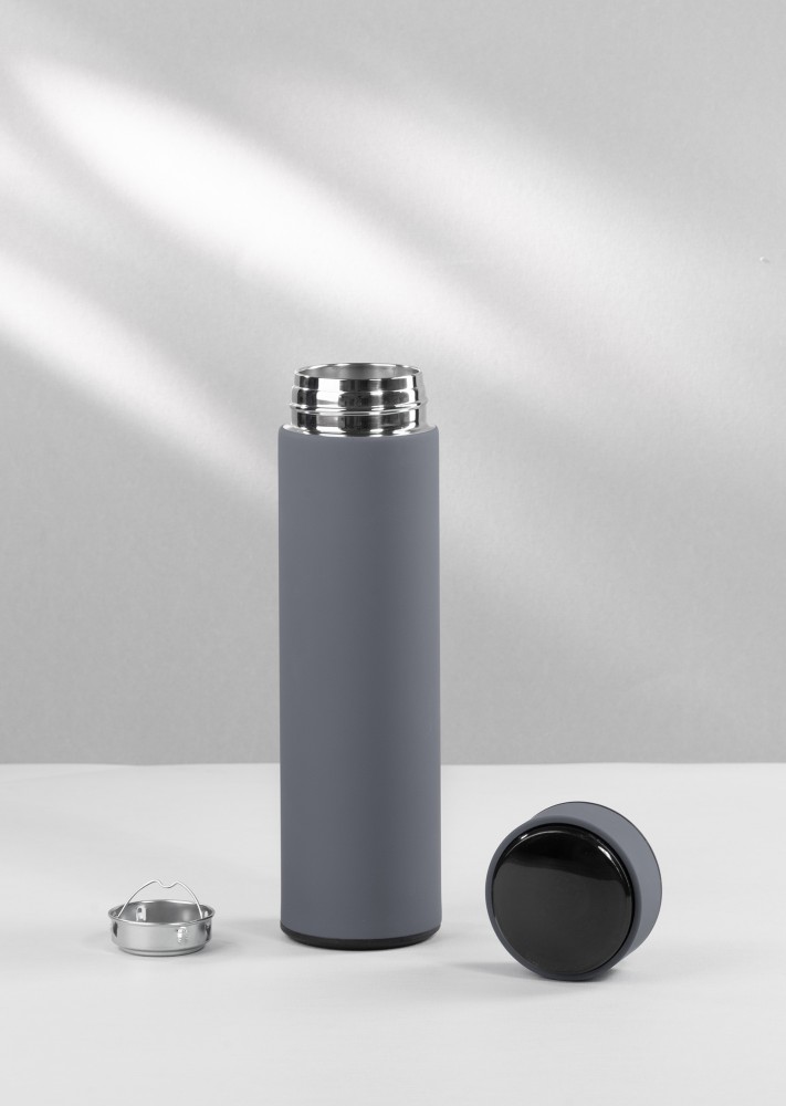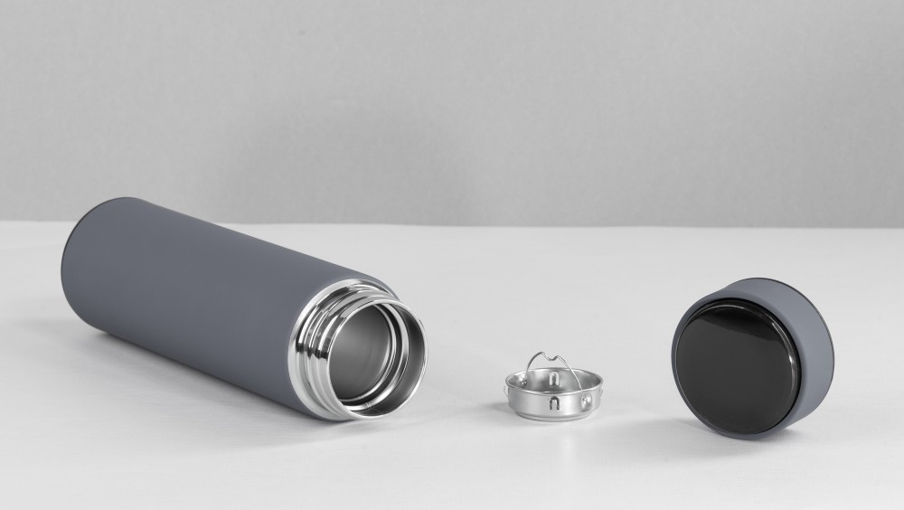 Термос "Бостон next" 500 мл с индикацией температуры, soft touch, сменная батарейка, серый