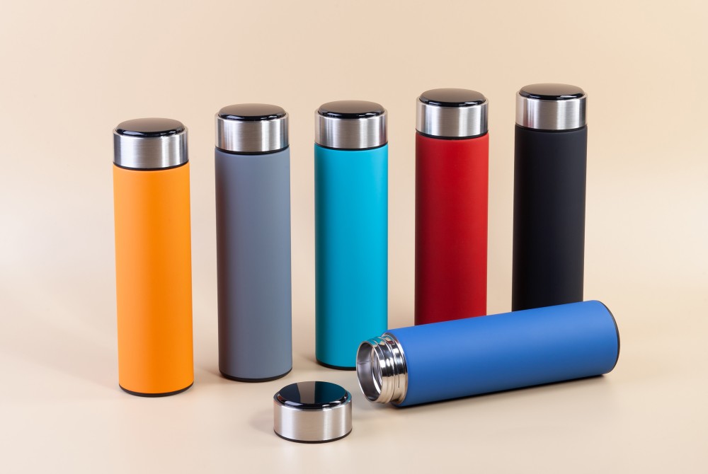 Термос "Бостон silver line" 500 мл с индикацией температуры, soft touch, бирюзовый