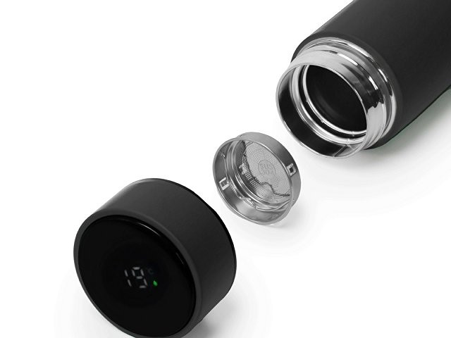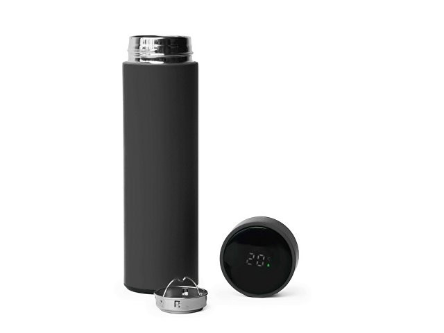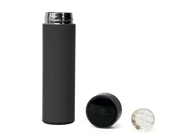 Расчет нанесенияТермос из нержавеющей стали, покрытый цветным soft touch, с крышкой, в которой встроен термометр и LED дисплей, показывающий температуру внутри термоса. Объем: 500 мл. Упаковка: каждый термос в крафт коробке.