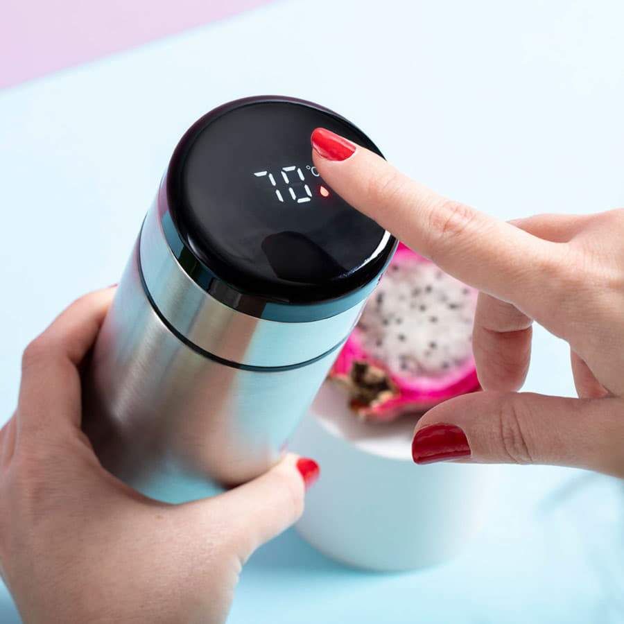Термос KAUCEX с ситечком и индикатором температуры, серебристый
