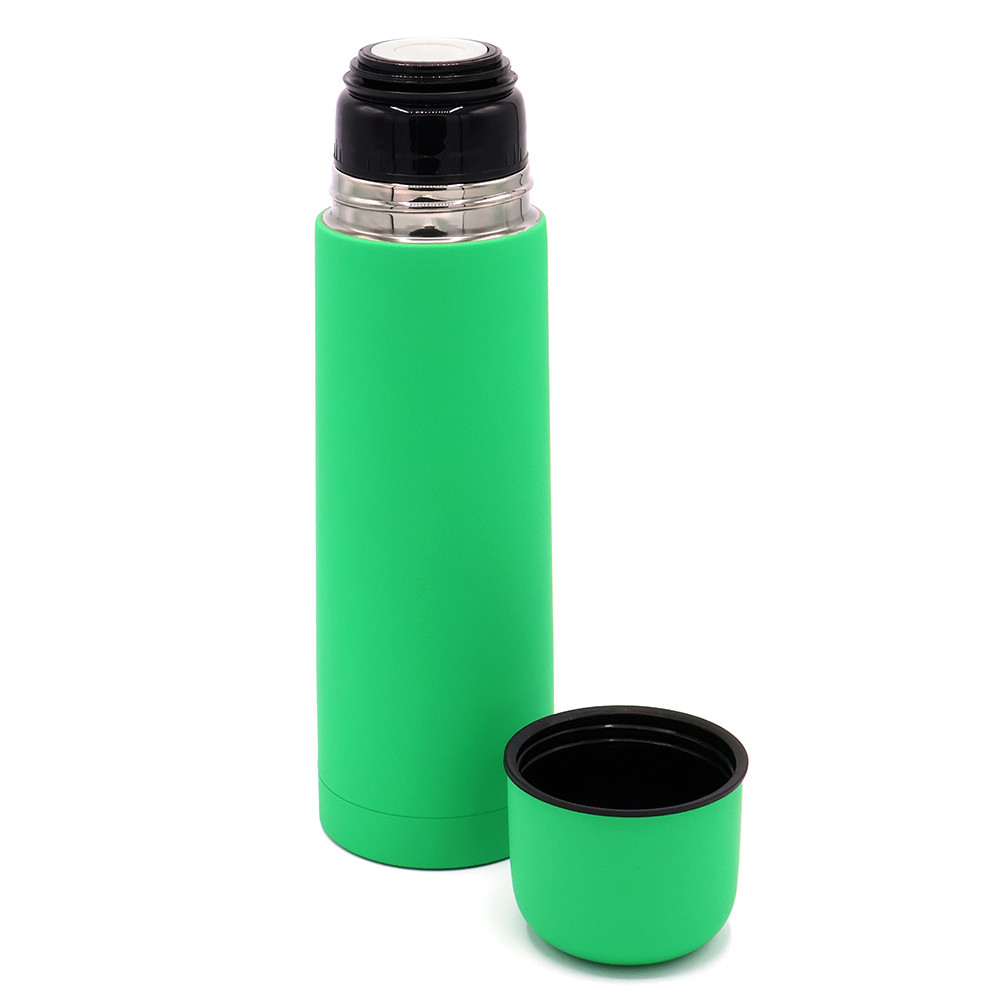 Вакуумный термос с двойными стенками из нержавеющей стали марки 304 надолго сохранит температуру Вашего напитка. Небольшой объем позволит взять его с собой на прогулку или пикник.Термос с покрытием софт тач Цвет, максимально приближенный к пантону Hexachrome Green C