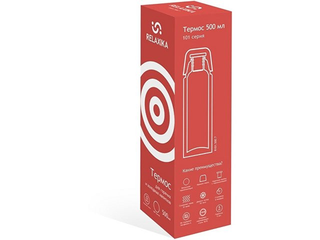 Классический термос Relaxika черного цвета с высокими показателями удержания температуры напитка для походов, путешествий, спорта и ежедневного использования. Прочные двойные стенки из высококачественной нержавеющей стали 18/8 с вакуумной изоляцией гарантируют, что ваш напиток останется холодным в течение 28 часов и горячим до 22 часов. Этот материал не только прочен, но и гигиеничен, не выделяет никаких вредных для здоровья веществ. Ваши напитки сохраняет естественный вкус и не приобретут посторонний запах. Напиток остается холодным до 28 часов и горячим до 22 часов. - Узкое горлышко позволяет удерживать температуру максимально долго - Крышку термоса можно использовать как чашку BPA Free. В пластмассах, используемых для производства термосов, отсутствует Бисфенол А - Надежная закручивающаяся пробка с силиконовым кольцом защищает от протекания и помогает удерживать температура - Высококачественная нержавеющая сталь 18/8 Рекомендации по уходу Не рекомендуется использовать посудомоечные машины при мытье изделия. Мойте мягкими губками и жидкими моющими средствами. Не используйте сухие абразивные средства чтобы не поцарапать поверхность. После мытья необходимо протереть сухой салфеткой или полотенцем и оставить сушиться без крышки. Не для микроволновой печи или морозильной камеры. Чтобы предотвратить утечку, тщательно закройте верхнюю крышку