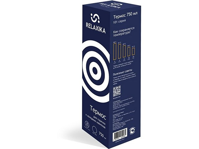 Классический термос Relaxika с высокими показателями удержания температуры напитка для походов, путешествий, спорта и ежедневного использования. Прочные двойные стенки из высококачественной нержавеющей стали 18/8 с вакуумной изоляцией гарантируют, что ваш напиток останется холодным в течение 36 часов и горячим до 30 часов. Этот материал не только прочен, но и гигиеничен, не выделяет никаких вредных для здоровья веществ. Ваши напитки сохраняет естественный вкус и не приобретут посторонний запах. Напиток остается холодным до 36 часов и горячим до 30 часов. - Узкое горлышко позволяет удерживать температуру максимально долго - Крышку термоса можно использовать как чашку BPA Free. В пластмассах, используемых для производства термосов, отсутствует Бисфенол А - Надежная закручивающаяся пробка с силиконовым кольцом защищает от протекания и помогает удерживать температура - Высококачественная нержавеющая сталь 18/8 Рекомендации по уходу Не рекомендуется использовать посудомоечные машины при мытье изделия. Мойте мягкими губками и жидкими моющими средствами. Не используйте сухие абразивные средства чтобы не поцарапать поверхность. После мытья необходимо протереть сухой салфеткой или полотенцем и оставить сушиться без крышки. Не для микроволновой печи или морозильной камеры. Чтобы предотвратить утечку, тщательно закройте верхнюю крышку.