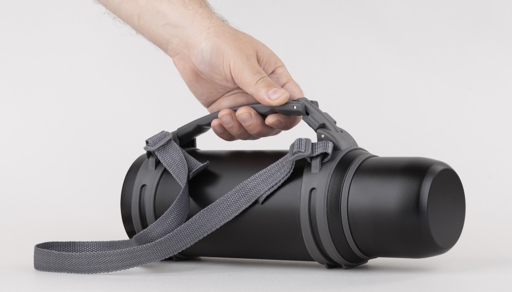 В основании термоса находится мягкая подушка (демпфер), которая защищает дно. В комплекте есть плечевой ремень 93 см, с которым "Сахалин" удобно переносить и брать с собой в дорогу, поход или путешествие.
