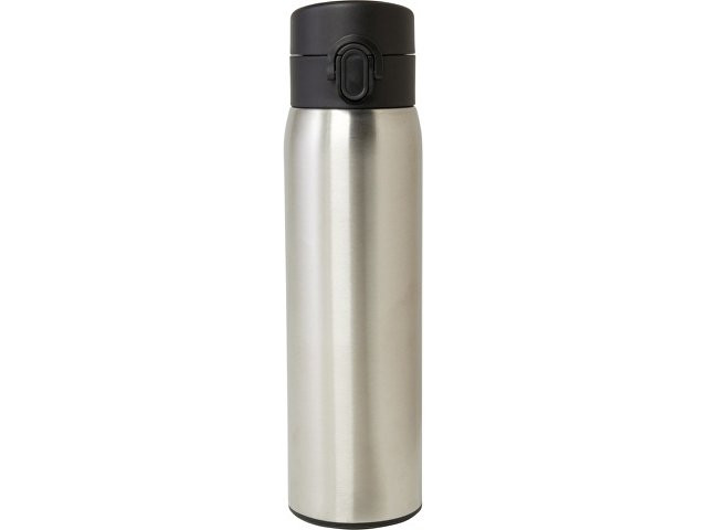 Стильная фляга-термос из переработанной нержавеющей стали, сертифицированная RCS, с простым механизмом открытия с помощью кнопки. Фляга герметична, а благодаря медной вакуумной изоляции напитки будут сохраняться горячими или холодными в течение нескольких часов. Объем составляет 450 мл. Поставляется в подарочной коробке из переработанного картона. Recycled stainless steel, Recycled PP Plastic. Packaging: FSC Mix Credit P5.1 CU-COC-877277.